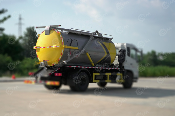 Бочка объёмом 8 м³ соединена с вакуумным насосом XD-300, обеспечивающим стабильное и интенсивное всасывание. Всасывающий шланг расположен рядом со сливным, что упрощает рабочий процесс, а быстроразъёмное соединение Camlock E400 сокращает время подключения и обслуживания. Система всасывания сверху позволяет эффективно работать с резервуарами и колодцами в ограниченном пространстве, обеспечивая полный цикл откачки без потерь.