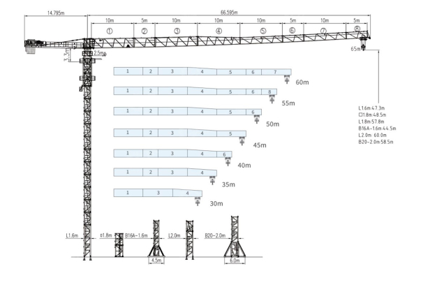 Башенный кран QTZ160 (6022) предназначен для выполнения подъёмных и монтажных работ при строительстве жилых, промышленных и инфраструктурных объектов. Машина используется для перемещения строительных материалов, конструкций и оборудования на строительных площадках, обеспечивая эффективную работу на высоте и на значительном вылете стрелы.