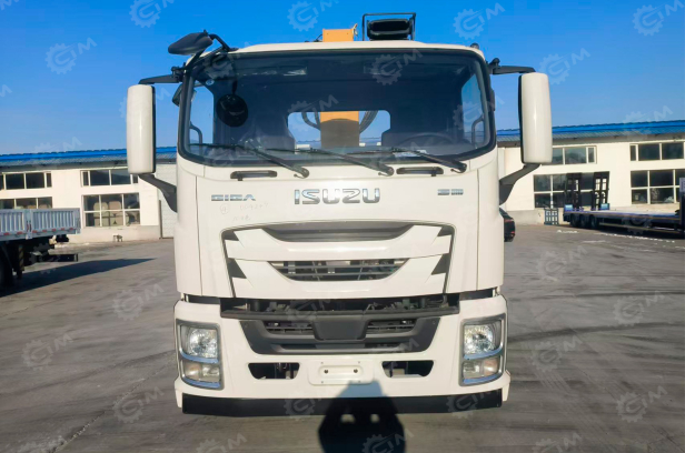 По конструкции это шасси ISUZU с бортовым кузовом размером 6500×2450×550 мм и грузоподъёмностью до 8 тонн. Установлен КМУ XCMG GSQS250-5 грузоподъёмностью до 10 тонн с пятиисекционной стрелой и вылетом до 18,6 метра, оснащённый задними аутригерами для устойчивости, рабочей корзиной и пультом дистанционного управления для точной и безопасной работы.