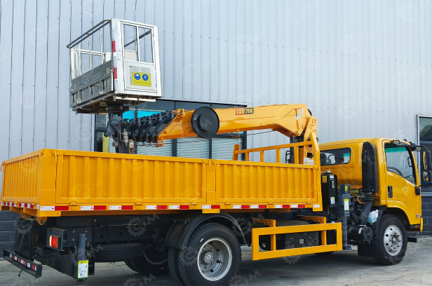 Бортовой грузовик ISUZU 4x2 самосвальный кузов дв 151kw кабина Elf гп 6т с кму гп 5т высота подъема 17м, с корзиной, кузов 6000х2400х550
