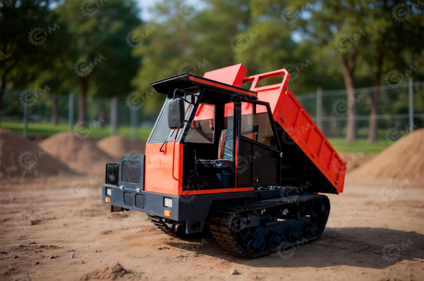 Гусеничное шасси обеспечивает высокую проходимость и устойчивость на слабых, рыхлых и неровных грунтах, снижая давление на поверхность. Кабина оператора защищает от внешних воздействий и обеспечивает базовый комфорт при длительной эксплуатации. Поворотная грузовая платформа позволяет выполнять разгрузку в ограниченном пространстве без необходимости разворота всей машины, что значительно повышает манёвренность и удобство работы. Конструкция ориентирована на надёжность, простоту обслуживания и устойчивость к интенсивным нагрузкам.