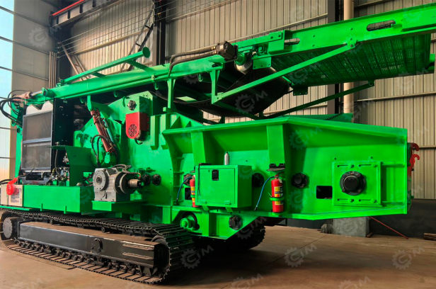 Модель HX1400DYK-800 оборудована ротором диаметром 800 мм и рассчитана на переработку исходного материала диаметром до 300 мм, обеспечивая производительность 25–30 тонн в час. Гусеничное шасси позволяет технике работать на неровной и сложной местности, обеспечивая манёвренность и стабильность в процессе эксплуатации.