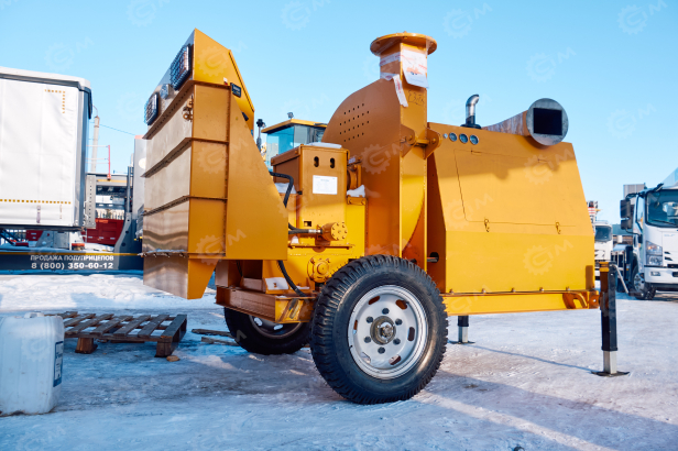 Конструкция выполнена на прицепной раме, которая допускает буксировку за автомобилем или коммунальной техникой. Рабочий механизм представляет собой измельчающий блок с ножами или валами, рассчитанными на равномерную подачу веток без рывков. Загрузочный лоток сделан с удобным углом, чтобы оператор мог подавать материал без лишних усилий. Привод обычно идёт либо от собственного двигателя, либо от ВОМ тягача — в любом случае работа получается стабильной. Щепа выходит через регулируемый выброс, её можно направлять сразу в кузов, на землю или в контейнер. Управление простое, логичное, без лишних регулировок.