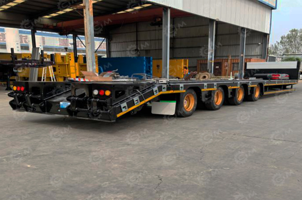 Полуприцеп оснащён четырёхосной ходовой частью, обеспечивающей равномерное распределение нагрузки и устойчивость при движении с тяжёлым грузом. Габаритные размеры платформы составляют 16500×2500×3650 мм, что позволяет перевозить широкий спектр техники и оборудования. Складывающиеся трапы, выполненные вровень с полом, обеспечивают удобный и безопасный заезд техники без резких перепадов высоты. Первая ось выполнена ленивой, что снижает износ шин и повышает манёвренность при движении без нагрузки. Конструкция дополнена кониками и фитингами для надёжной фиксации различных типов грузов, включая технику и контейнеры. Высота сцепного устройства ССУ 1350 мм обеспечивает совместимость с большинством седельных тягачей и стабильность автопоезда при эксплуатации.
