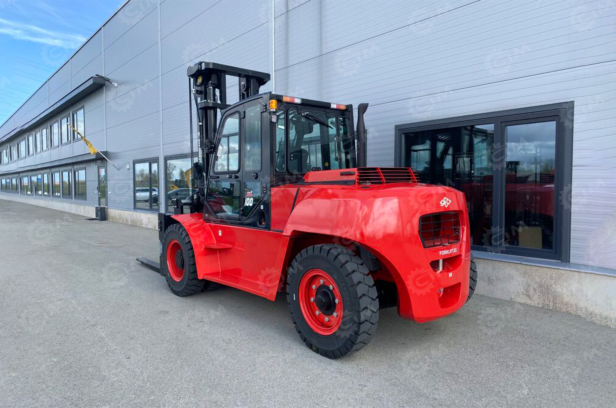 По конструкции это погрузчик грузоподъёмностью до 10 тонн с высотой подъёма до 3 метров, оснащённый кабиной с отопителем для комфортной работы в холодных условиях. Предусмотрены позиционер вил и функция смещения каретки, что позволяет точно настраивать положение груза и облегчает работу с разными типами паллет.