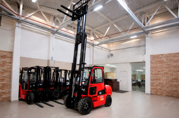 Погрузчик оснащён двигателем мощностью 36 кВт и рассчитан на грузоподъёмность 3 тонны, что делает его универсальным решением для большинства складских задач. Мачта обеспечивает высоту подъёма до 3 метров, позволяя выполнять укладку грузов на стеллажи и транспорт. Машина оборудована кабиной с отопителем, что создаёт комфортные условия для оператора при работе в холодное время года и позволяет эффективно эксплуатировать технику как внутри помещений, так и на открытых площадках.